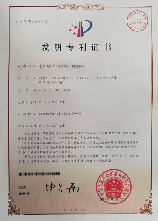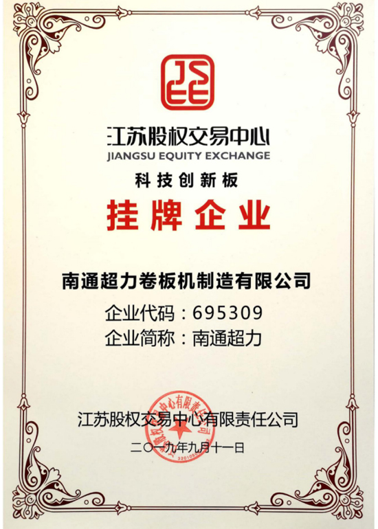 南通超力卷板機(jī)制造有限公司,國家高新技術(shù)企業(yè),中國卷板機(jī)機(jī)床專業(yè)設(shè)計、研發(fā)與制造企業(yè)。公司承擔(dān)國家火炬計劃項目3項,《JB/T12830-2016/數(shù)控二輥卷板機(jī)》、《JBCPZT0758-2016/數(shù)控矯圓機(jī)》行業(yè)標(biāo)準(zhǔn)起草單位,中國鍛壓協(xié)會會員,擁有W10、W11和W12等出口產(chǎn)品質(zhì)量許可證。