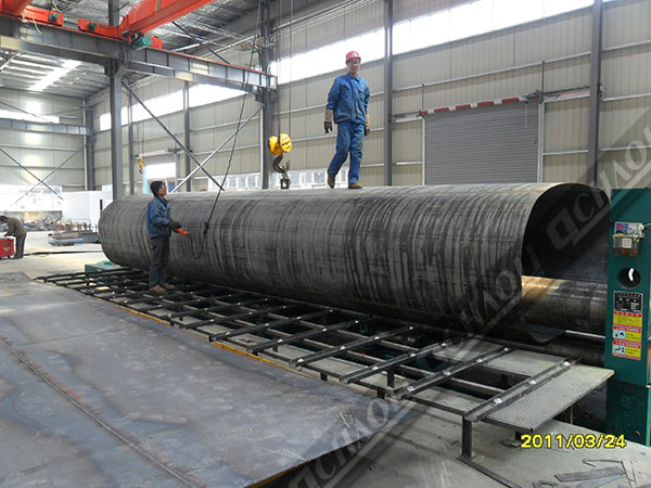 掛車用卷板機(jī)主要用作槽罐車、撬裝站等大直徑較寬板幅工件的卷制。通常采用W11Y液壓對(duì)稱式卷板機(jī),亦可選擇上輥萬(wàn)能式及四輥卷板機(jī)。可卷制鋁合金、鋼板、不銹鋼、容器板等各種材質(zhì)。板厚3mm-20mm,板寬10000mm的板料。